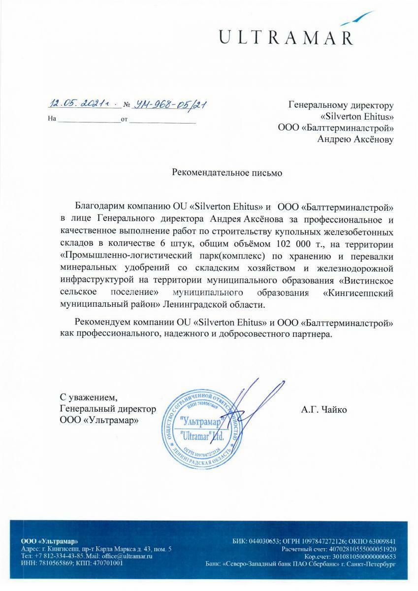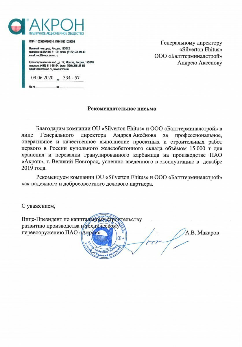 Команда ООО «БАЛТТЕРМИНАЛСТРОЙ»с 2000 года осуществляет разработку, проектирование, прохождения экспертизы и строительство железобетонных купольных конструкций различной ёмкости, предназначенных для хранения и перевалки всех видов сыпучих грузов.